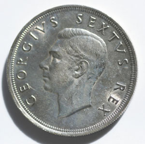 Bare head of George VI left, HP (Humphrey Paget) initials on neck truncation